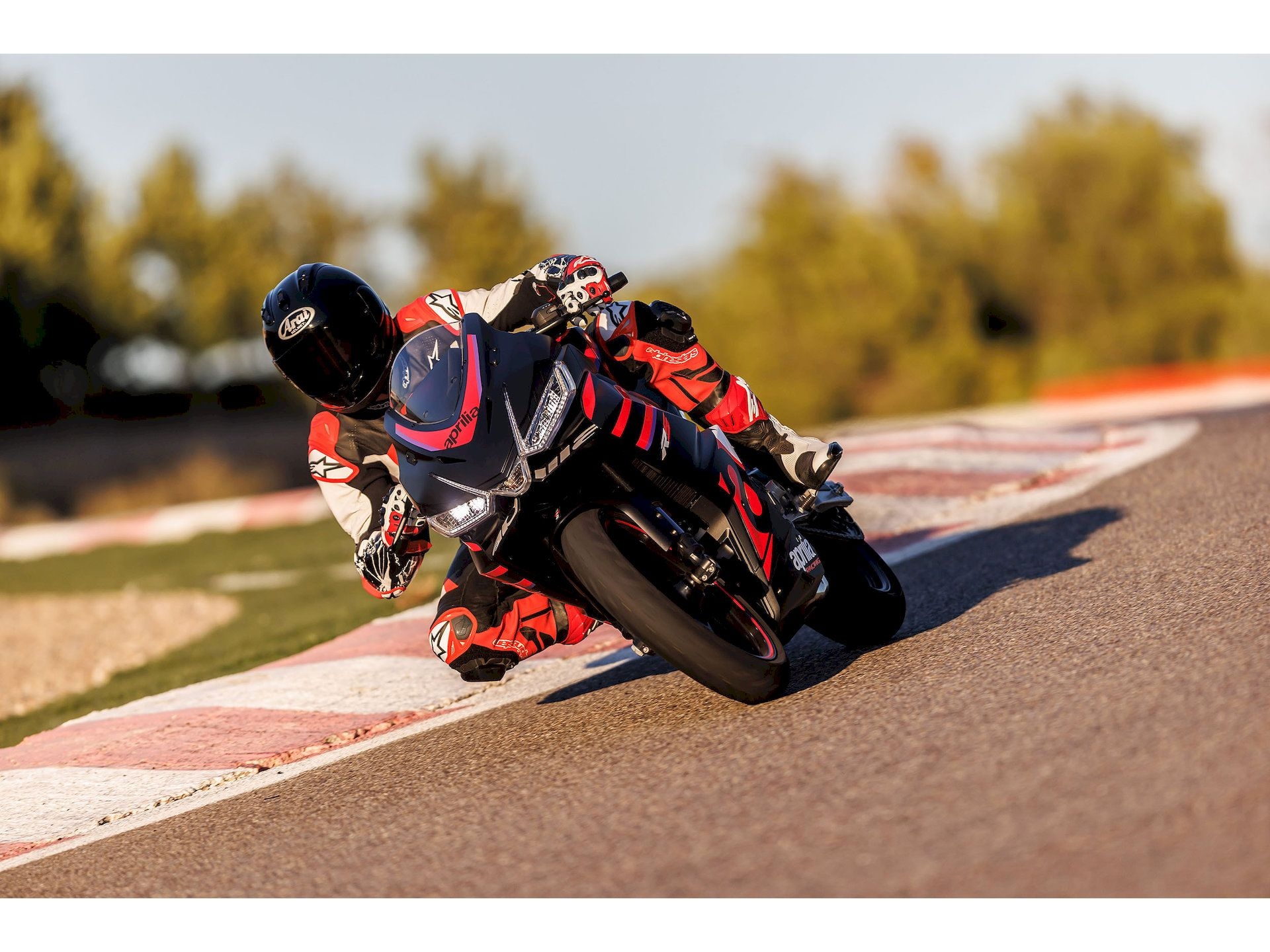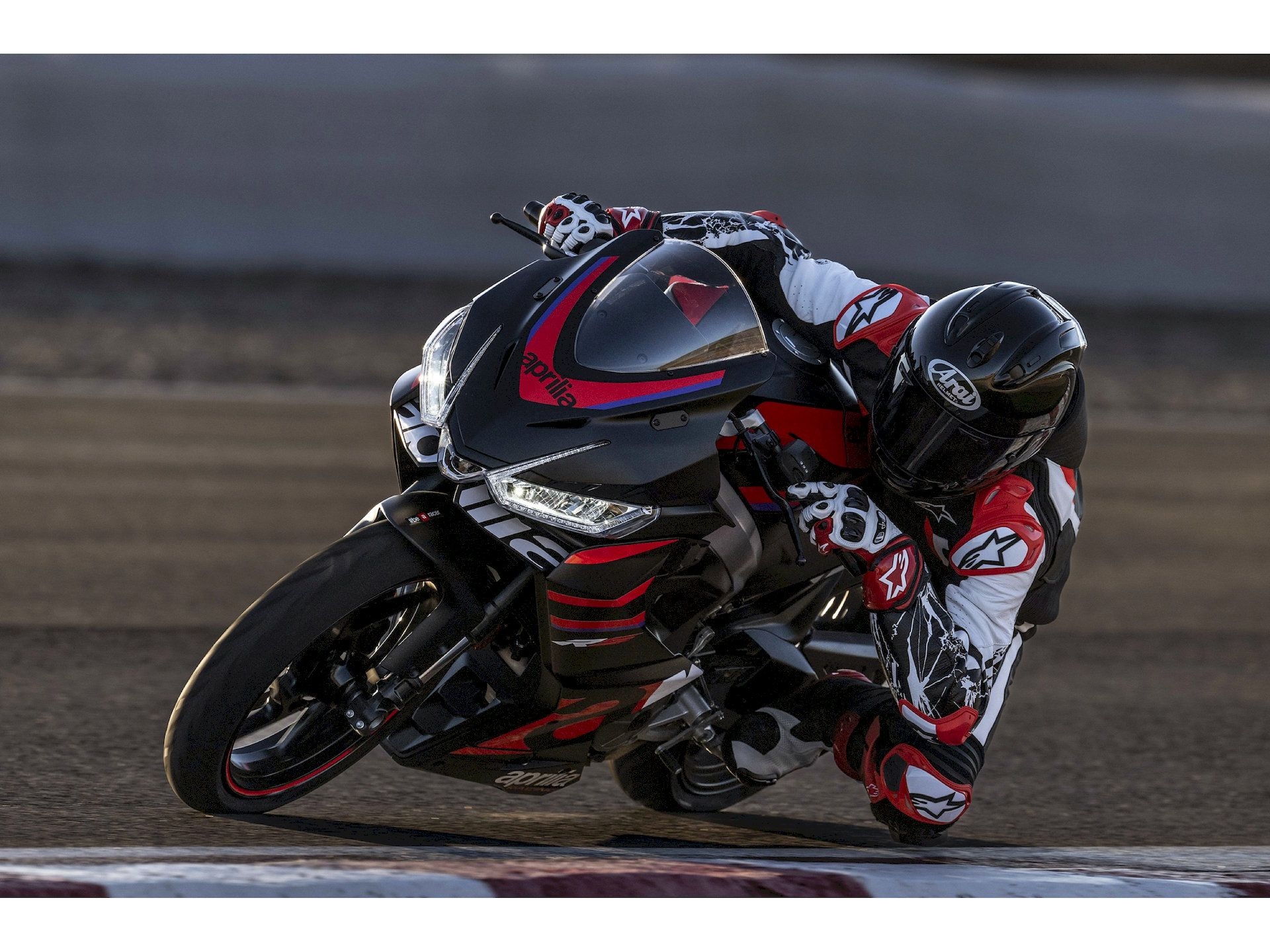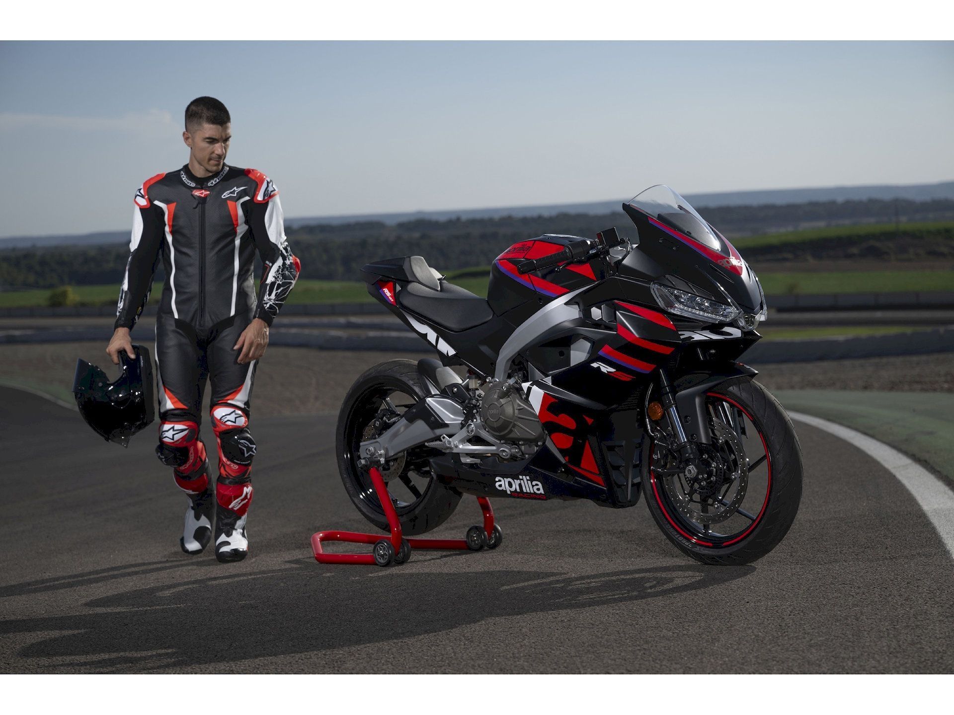 "Wenn du den Starter drückst, erwacht nicht nur ein Motor – es erwacht eine Legende. Der neu entwickelte 457ccm Zweizylinder ist eine Hommage an die Power, die Aprilia zum Weltmeister gemacht hat. 48 PS treffen auf radikale Leichtigkeit. Das Ergebnis? Ein Antritt, der dir den Atem raubt und ein Sound, der die Rennstrecke direkt in deinen Helm projiziert."