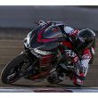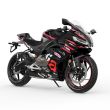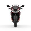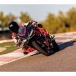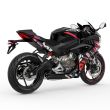 Die aggressive Doppel-Frontverkleidung ist nicht nur ein optisches Highlight, sondern bietet optimalen Windschutz und Stabilität bei hohen Geschwindigkeiten. Der integrierte 2-in-1-Auspuff unterstreicht die kompakte, massenzentrierte Bauweise.