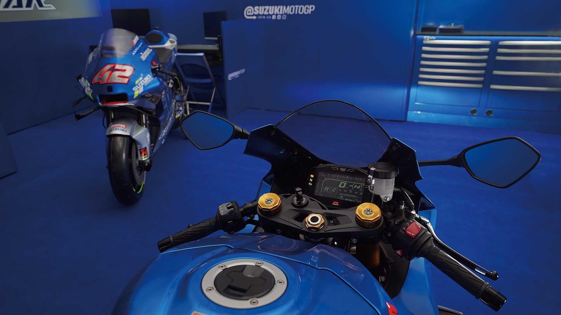 Die GSX-R1000R, die direkt nach ihrer Einführung Rennen und Meisterschaften in Großbritannien, den USA und Australien, sowie den Senior TT auf der Isle of Man gewonnen hat, teilt mehr als nur die Farbgebung mit dem GP-Rennmotorrad. Sie verwendet dasselbe variable Ventilsteuerungssystem zur Steigerung des Drehmoments und der Spitzenleistung. Sie verfügt außerdem über eine umfassende Elektronik, 10 Traktionskontrollmodi, einen Quickshifter mit Blipperfunktion, eine Launch-Control und ein Kurven-ABS.