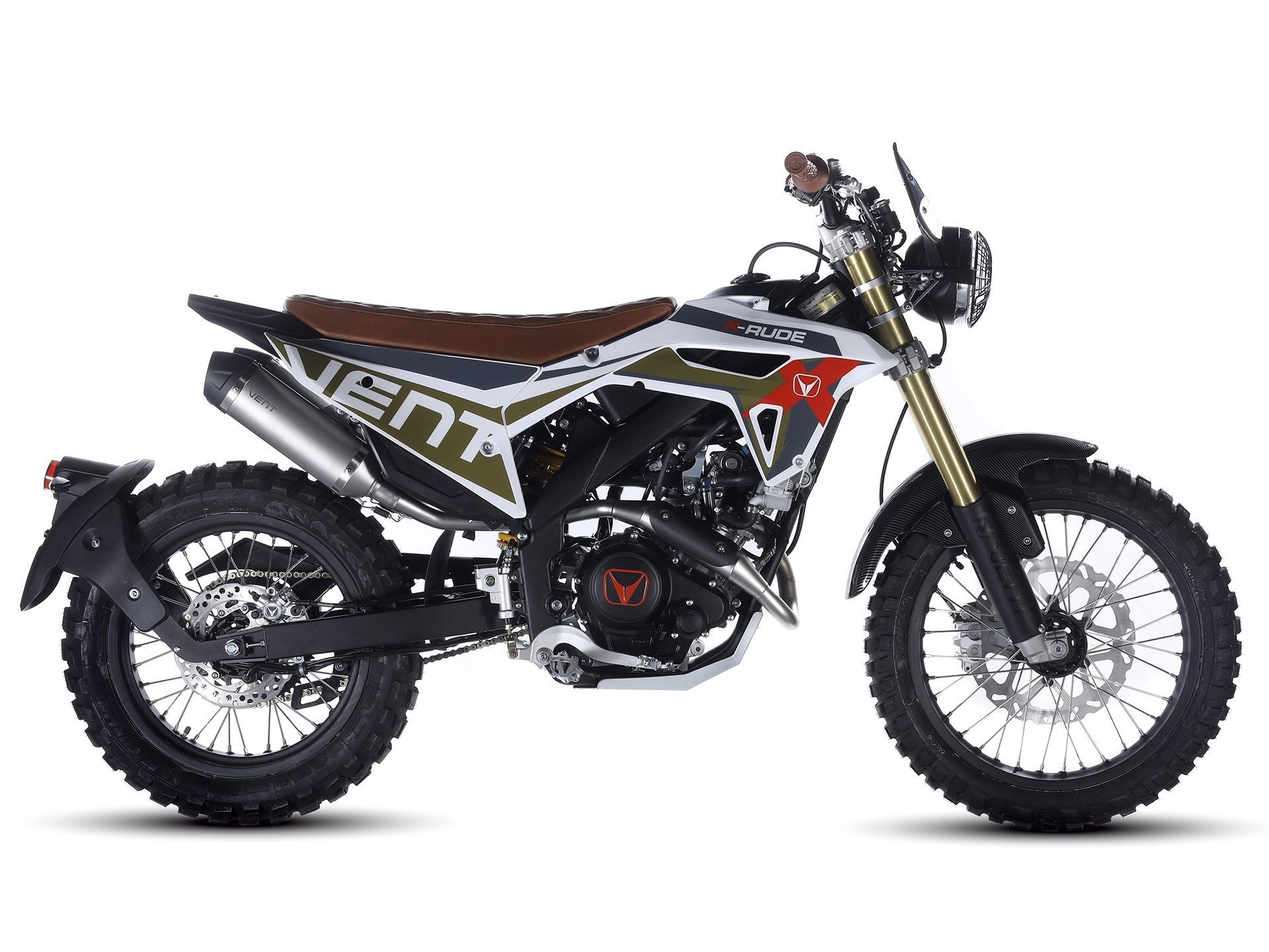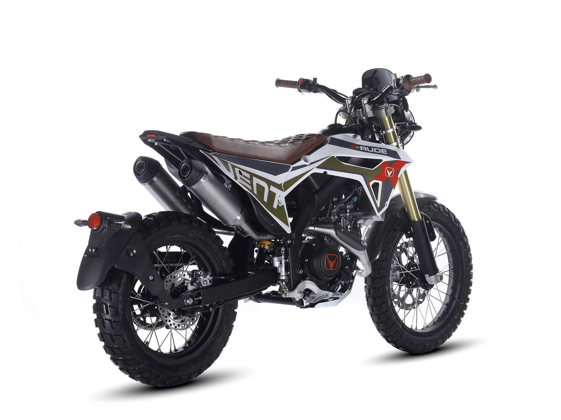 Der Name X-RUDE soll den maskulinen Charakter dieses Modells unterstreichen: Es ist ungehobelt im Namen (vom englischen "rude") und im Stil. Es spielt auf mehrere Segmente an, vom Café Racer bis zum Scrambler. Es hat ein elegantes Styling, mit trendigen Grafiken und technischen Details. Es eignet sich perfekt für Fahrten in der Stadt auf Asphalt sowie für Fahrten im Gelände.