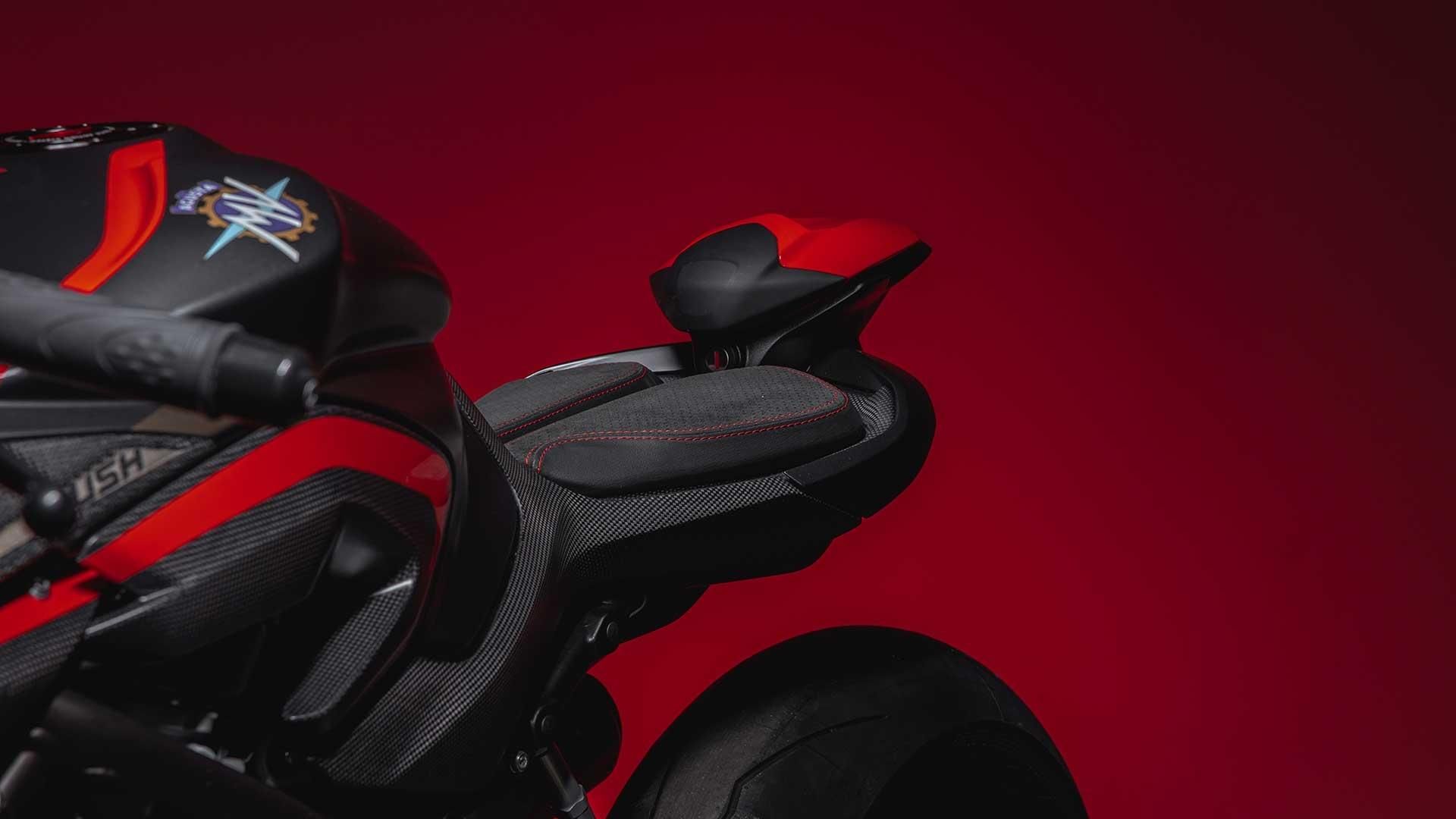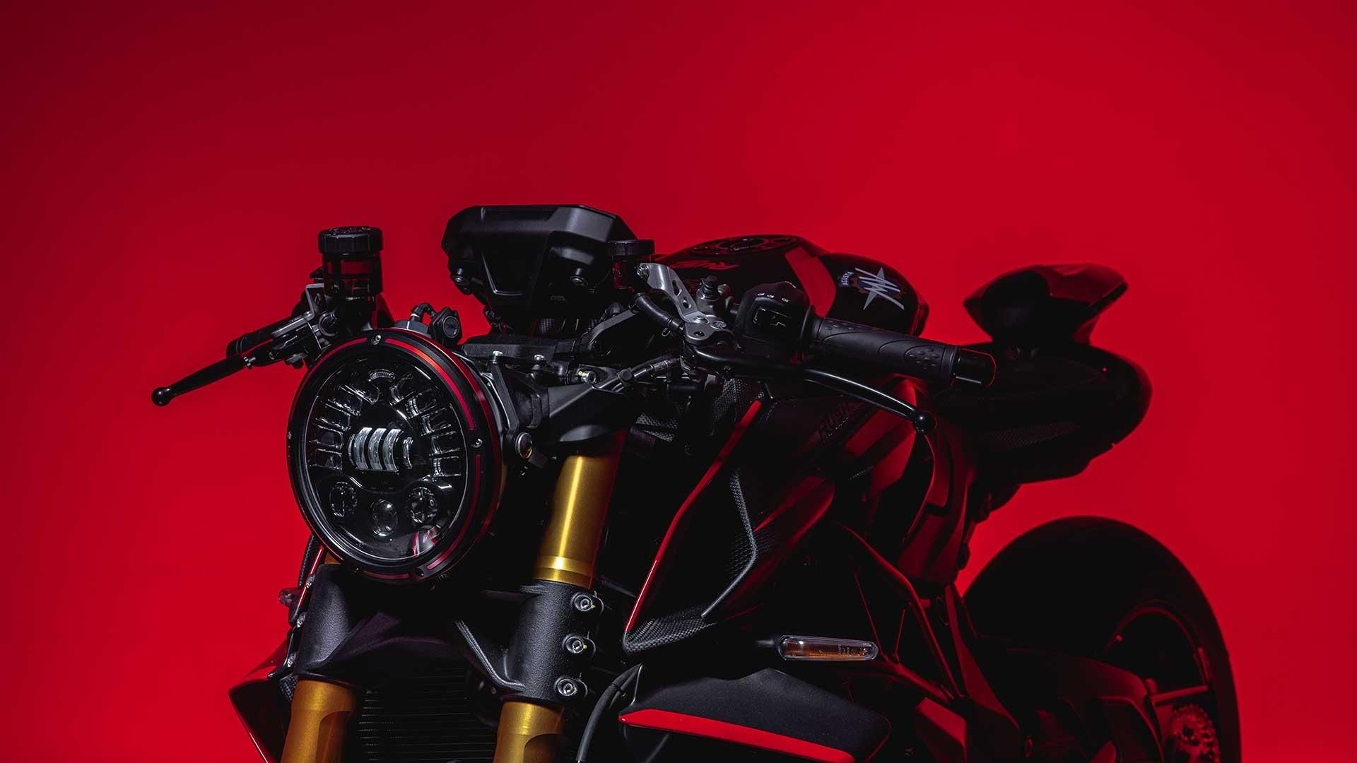 Die Rush 1000 mit einem 4-Reihen-Zylinder-Motor, 208 PS (212 PS mit dem Racing Kit) und eine Höchstgeschwindigkeit von über 300 km/h, ist ein Modell für diejenigen, die keine Angst davor haben, sich von der Masse abzuheben. Alle Komponenten sind darauf ausgerichtet, das Konzept des "Hyper Naked Beast" zu betonen. Die aerodynamische Hinterradabdeckung, eine technische Lösung, die bei Drag-Rennen zur Reduzierung des Luftwiderstands eingesetzt wird, ist ein klares Beispiel für diese Haltung.
