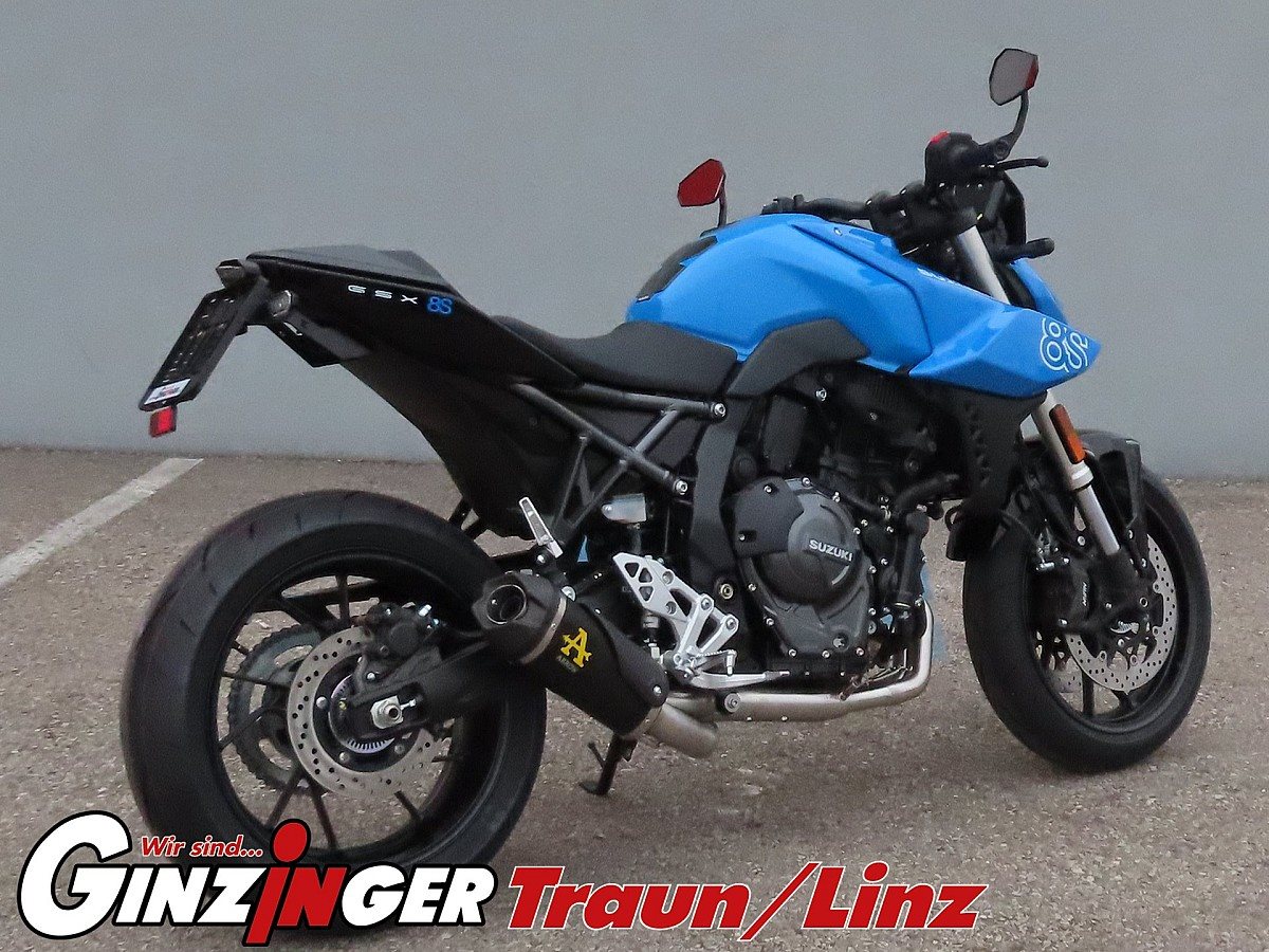Diese GSX-8S wurde nach unseren Vorstellungen veredelt: ein kurzes Heck, Tankpad, Lenkerendenspiegel, original LED Blinker, einer Soziusabdeckung sowie eine Arrow-Komplettanlage, die dem Bike genau den Sound verleiht, den es verdient.