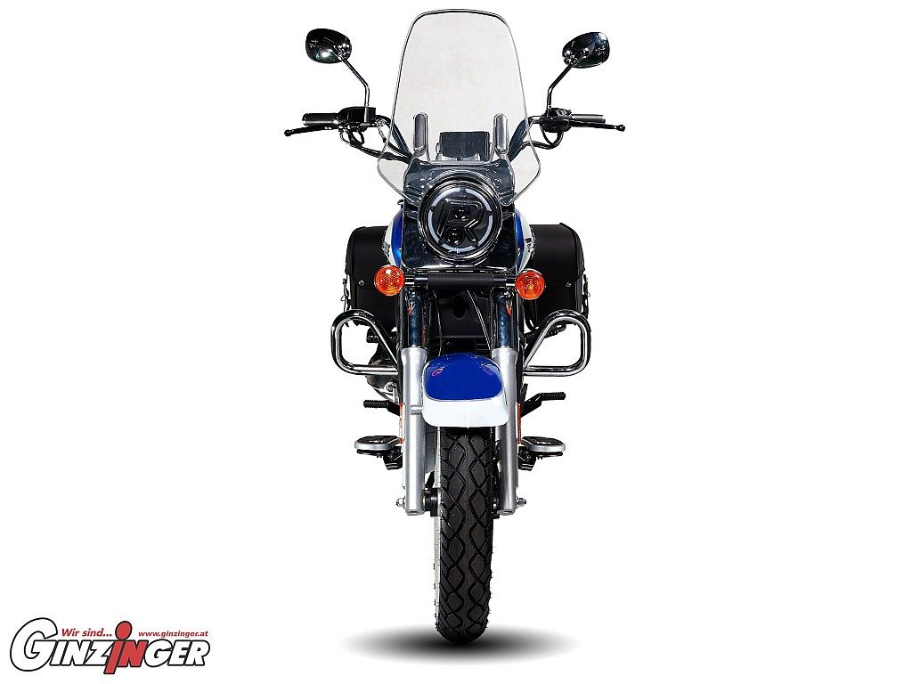 Lässige 125er Chopper im klassischen Stil, mit Seitentaschen und praktischer Rückenlehne für Beifahrer.