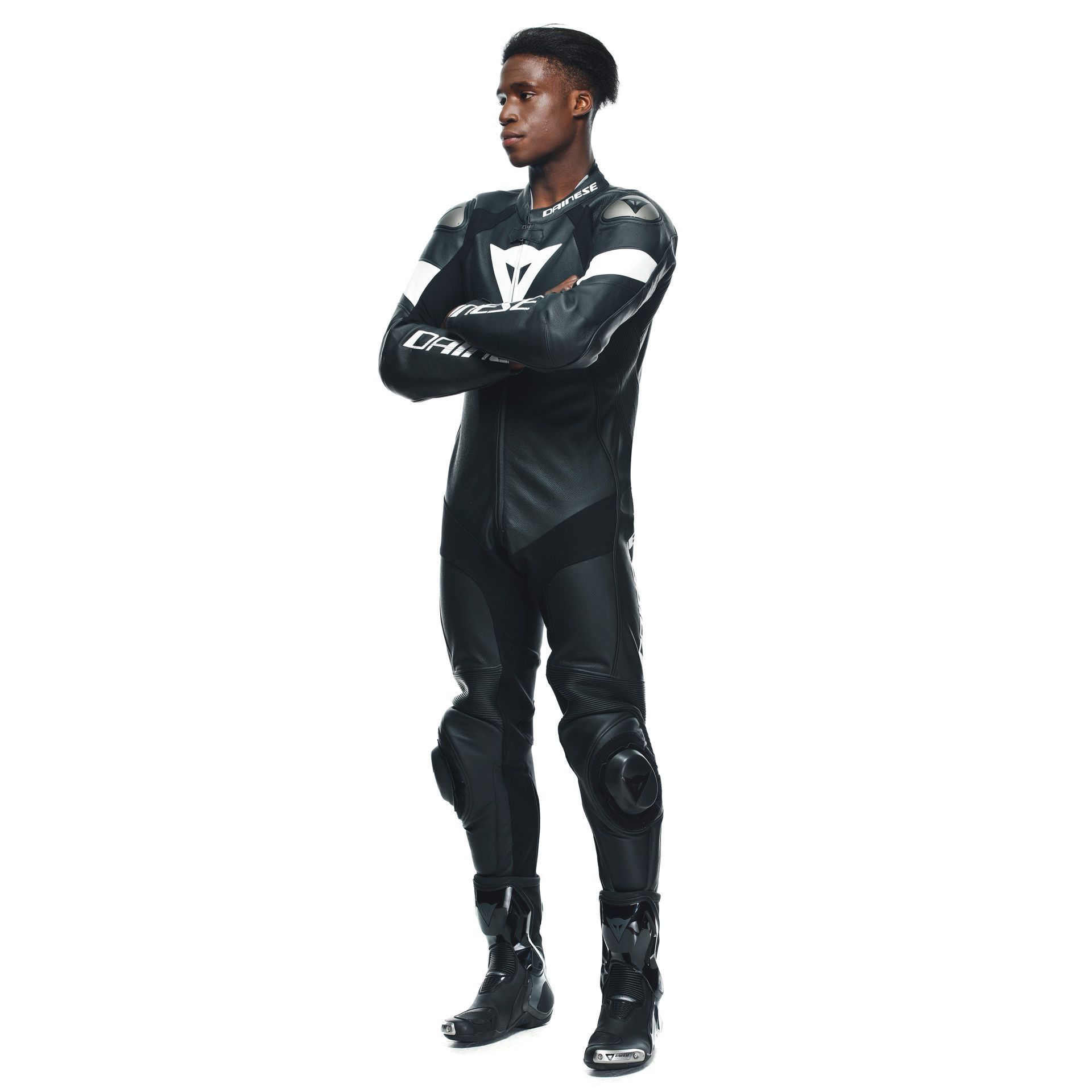 Das spezielle Schutzsystem kombiniert die klassischen Dainese-Innenprotektoren mit abnehmbaren Slidern an den Knien und austauschbaren Aluminiumplatten an den Schultern: eine besondere Technologie von Dainese, die das Rutschen im Falle eines Sturzes unterstützt und begünstigt und so gefährliche Überschläge aufgrund von Haftung auf dem Asphalt verhindert.