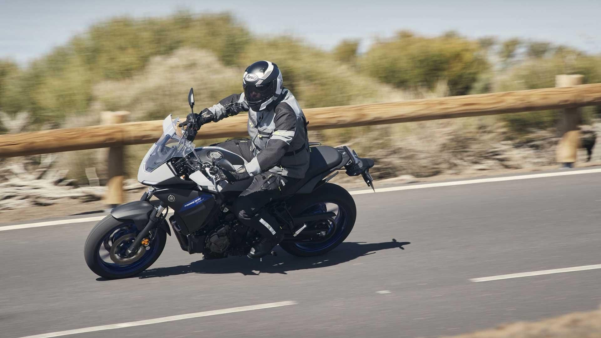 Das erste Mal durfte ich Yamahas neue Tracer 700 ja bereits im Februar auf Teneriffa testen. Dort herrschten zum Glück gänzlich andere Bedingungen: 23 Grad und strahlender Sonnenschein, stellten andere Anforderungen an die Textilkombi. Dort entfernte ich kurzerhand die Innenjacke und -hose und öffnete je nach Seehöhe eine oder mehrere der vier Ventilationsöffnungen auf der Brust und im Rückenbereich sowie die Öffnungen an der Hose und sorgte so für eine entsprechende Luftzirkulation. Im Innern von Jacke und Hose sorgt im Rückenbereich ein atmungsaktives 3D-Mesh-Gewebe für den Abtransport der Feuchtigkeit nach außen. Das atmungsaktive Netzfutter mit Wassersperre verschaffte mir ein angenehmes Körperklima.