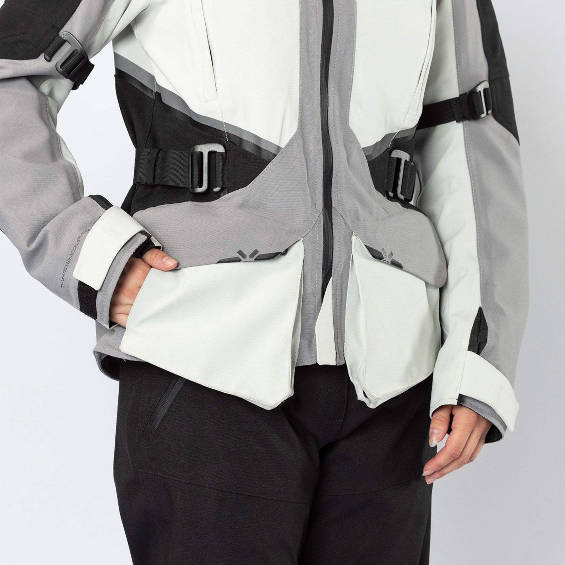 Der verstellbare Bund und die Armabschlüsse mit Klettverschluss ermöglichen eine perfekte, individuelle Passform, die ein Flattern bei höheren Geschwindigkeiten verhindert. Für Stauraum ist ebenfalls gesorgt: Die Jacke verfügt über 4 Außentaschen, von denen zwei wasserdicht sind, eine große Rückentasche für zum Beispiel das Regen-Innenfutter und mehrere Innentaschen. Ein langer Verbindungsreißverschluss ermöglicht die sichere Kombination mit einer passenden Motorradhose. So entsteht eine einheitliche, wetterfeste Kombination.