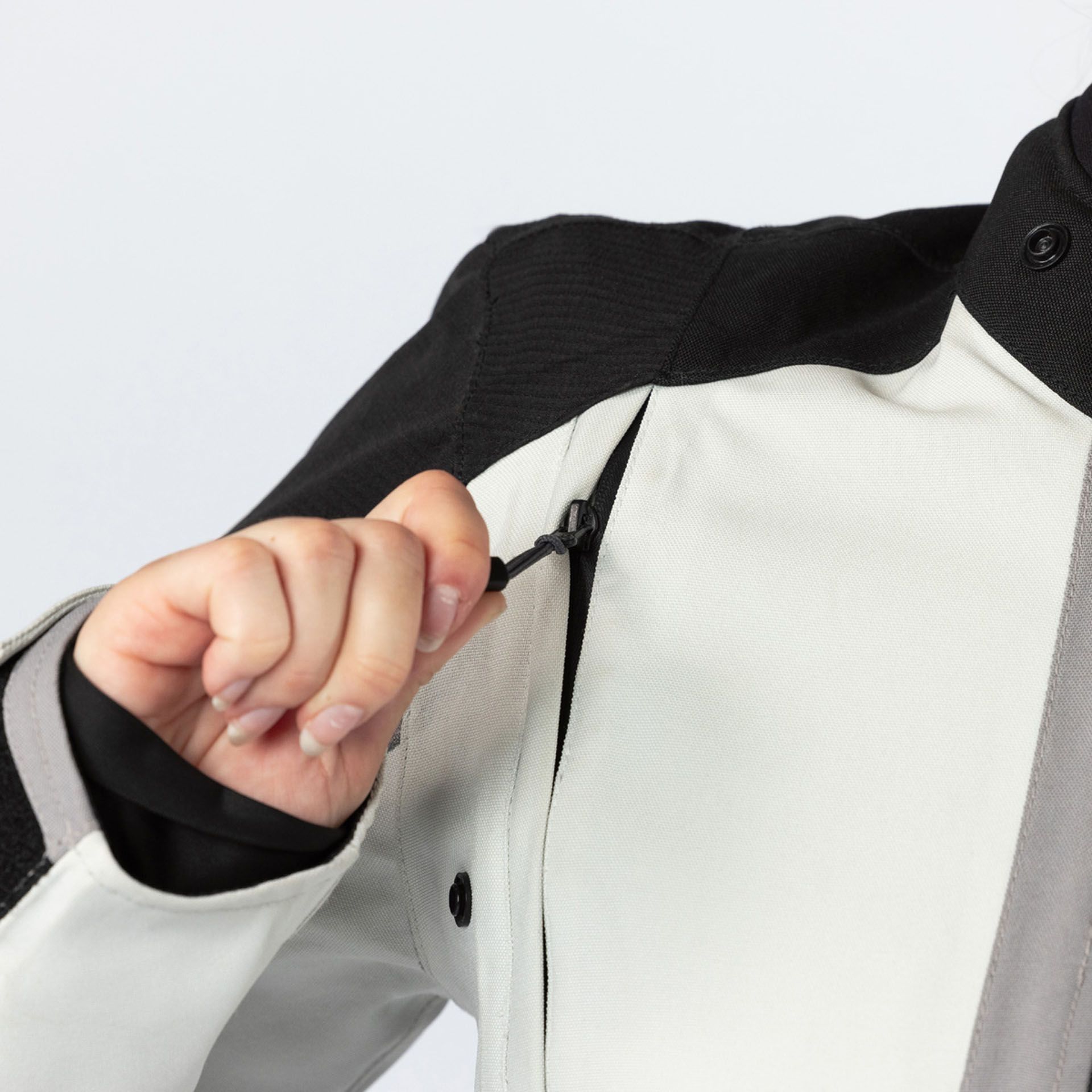Die Jacke ist nach der Schutzklasse AA zertifiziert, was eine robuste und widerstandsfähige Bauweise garantiert. Der Aufprallschutz wird durch die hochwertigen und CE-zertifizierten impacTec® Schulter- und Ellbogenprotektoren der Stufe 2 gewährleistet. Ein besonderes Feature ist die Airbag-Ready-Vorbereitung. Das bedeutet, die Jacke ist so konstruiert, dass sie eine separate Airbag-Weste problemlos aufnehmen kann. Durch elastische Materialien und einen angepassten Schnitt ist sichergestellt, dass sich der Airbag im Ernstfall frei entfalten kann, ohne die Jacke zu beschädigen.